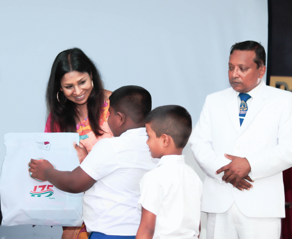 Image Caption – by Ms. Dinusha Bhaskaran, Managing Director of Vallibel One (parent company of Delmege Group), with meaningful celebration at Veluwana College, Colombo 9,