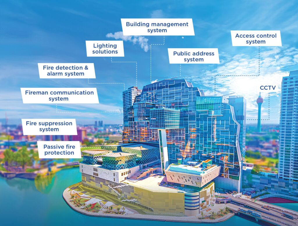 மனித உயிர்களையும் சொத்துகளையும் பாதுகாக்கும் வகையில், உலகளாவிய ரீதியில் நம்பகத்தன்மை மற்றும் துல்லியத் தன்மைக்காக அங்கீகரிக்கப்பட்ட Siemens Sinteso Fire Detection and Alarm System இந்தத் திட்டத்தில் நிறுவப்பட்டுள்ளது. ASAtechnology™ அம்சத்துடன் கூடிய இந்த கட்டமைப்பானது, பல்வேறு உணர்திறன் மிக்க சென்சர்கள் மூலம் தவறான எச்சரிக்கைகளுக்கு செயற்படாமல், துல்லியமாக அபாயங்களை கண்டறியக்கூடிய உயர்தர திறனைக் கொண்டுள்ளது.
