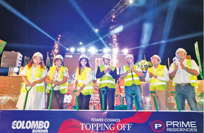 Prime Lands Residencies PLC has reached a significant construction milestone with the topping out of Tower Cosmos, one of The Colombo Border development’s three residential towers.